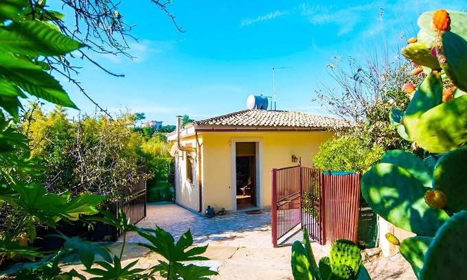 Independent villa at Lido di Noto about 300 metres from the beach and about 7 km from the historic centre of Noto capital of the baroque and Unesco heritage (province of Syracuse ) with 1500 square metres of lemon grove and orchard completely fenced. Animals are welcome and the villas are suitable for a holiday with your pet. The house is composed as follows: it has two bedrooms, both air-conditioned, one with a double bed and a single bed, the other with a double bed, two bathrooms, a living room with satellite TV, a cast-iron wood-burning stove, a library with books in various languages and a brand new comfortable sofa bed. A masonry kitchen in rustic Sicilian style. There are also two outdoor verandas, one of which overlooks the garden, furnished with hand-painted lava ceramic tables, wrought-iron chairs, deckchairs, sofas and sunshades. The house also has private parking, unlimited wifi and an outdoor shower. From the house it is very easy to reach the most beautiful cities and towns in south-eastern Sicily such as Syracuse the second city of the Roman Empire built in 734 AD and its island Ortigia, a Unesco heritage site. From here it is also easy to reach Modica famous for its Baroque style and chocolate. Ragusa, Scicli the town of Commissioner Montalbano. Catania and its volcano Etna. Palazzolo Acreide, a town rich in gastronomic excellence and culture. Avola the town of almonds and Nero d'Avola. The villa is very close to the Vendicari nature reserve where there is one of the five most beautiful beaches in Italy: the Calamosche beach. It is also very close to the Cavangrande del Cassibile reserve where the "Laghetti di Avola Antica" are located. Real natural canyons