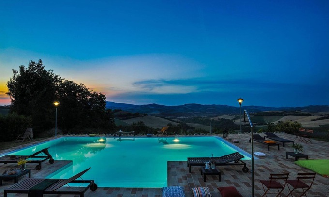 In front of the porch of this beautiful villa you have an infinity pool that overlooks on a breath-taking view on the rolling hills dotted with houses. In this place you are immersed in total privacy even if you are a few minutes drive from the town. This rental home that provides a large enclosed garden is the ideal place to spend a holiday in complete relax.