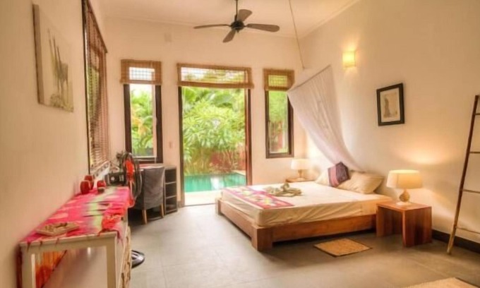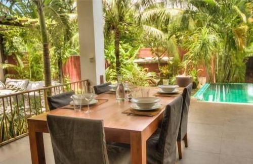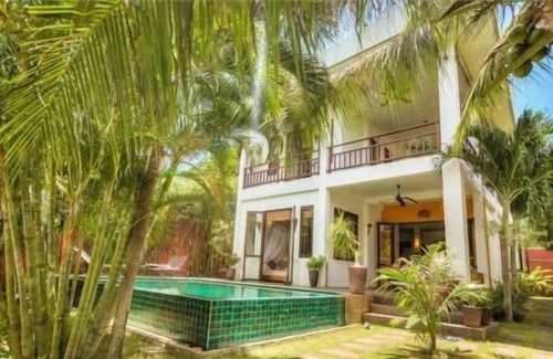 Namkah Villa, set in a private, walled tropical garden, has an infinity swimming pool complete with swimming jet, and 3 bedrooms, all with ensuite bathrooms.The ground floor features a large, open-plan living area extending onto an outside terrace and a well equipped kitchen, as well as the master bedroom, with French doors opening out onto the pool terrace. The upstairs area has two more large bedrooms, accessed via a large open-sided living space, overlooking the pool.