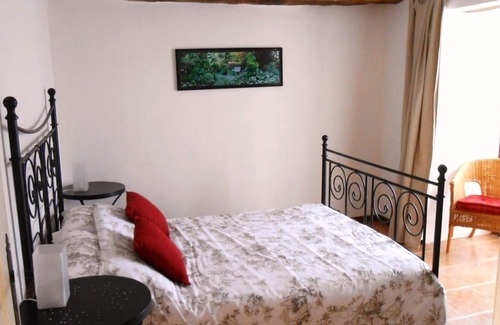 Private fenced BBQ terrace with built-in stone chimney barbecue. Outdoor dining table with chairs and sunshade plus 2 mesh reclining sun-loungers. Flowering shrubs and herbs edge the terrace. There are far reaching views to the distant forest from the terrace, the sunsets are wonderful. Beyond the terrace the paddock is dotted with oak and cider apple trees. Off-road parking available to the side of the property. Separate safe store room available for cycles, golf clubs, etc. Communal gravelled drive at the front of the gite which is semi-detached with the owners house next door.