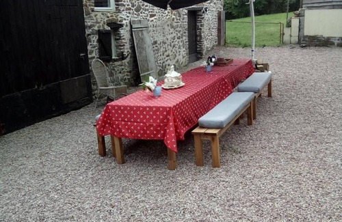Gite Rouge is a detached 8 person holiday home with 2 bathrooms. At a short distance you can visit the Normandy beaches and their history, go shopping in Caen or Falaise or swim in the nearby Lake of Rabodanges. Outside with front terrace and side terrace, accessible from the hallway. Furthermore, you can pick blackberries, raspberries, apples and pears on your own property in the autumn. In the neighbourhood there is always a local flea market (vide grenier) where you can walk around endlessly to find old French stuff. Layout: spacious kitchen with 5 burner cooker, fridge freezer and wood stove. Dining table with 10 seats. Stairs to first floor on front part with 2 bedrooms, Corridor to back part of the ground floor with spacious 2 person bedroom with fixed washbasin, separate toilet, bathroom with toilet, shower and fixed washbasin, second bathroom with fixed washbasin and shower, spacious living room on two levels with wood stove / Stairs to bedroom/playroom and another 4 person bedroom. Washing machine, tumble dryer and various kitchen appliances available.