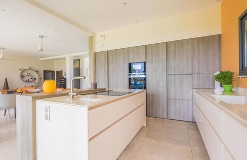 The whole house is equipped with ceiling fans and benefits from a cooling in the summer, in winter underfloor heating.