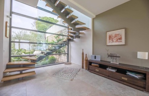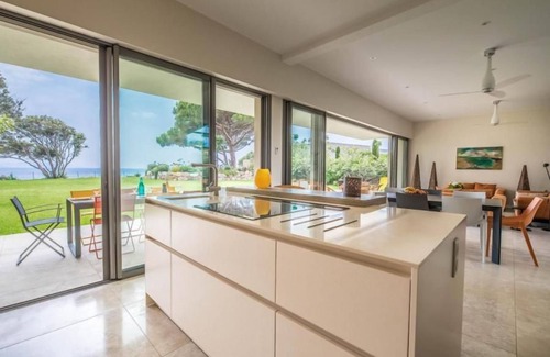 Recent contemporary house, at the edge of the water, window open on the nature, the sun, the sea, which offers space, light, simplicity.