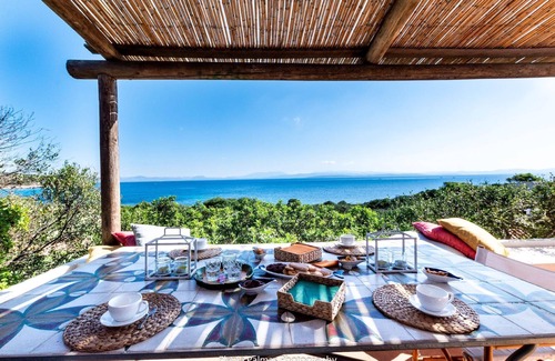 Su Mari Su 'Entu is a panoramic villa set in an exclusive and unrepeatable scenario. Immersed in a park of splendid Mediterranean maquis, it enjoys a unique view of the entire Turri bay. It is located 10 km from the town of Sant'Antioco and 90 km from the city of Cagliari. The villa is located within an integral landscape protection area (Special Protection Zone - Capo Sperone): an oasis of peace and tranquillity, far from noise and confusion, where the sound of the sea, the wind and the scent of the Mediterranean shrubs reign supreme.