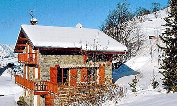 Comfort chalet with sauna, whirlpool, steam bath and wood-burning stove in the 3 Vallées region. The cosy natural stone chalet is conveniently located for the ski area and yet away from the tourist hustle and bustle of the large ski resort. The entire ski area can be reached in just a few minutes on the free ski bus to the centre of Les Ménuires or by car to the Bettaix chairlift. Spacious living/dining room with leather couch seating area by the roaring wood-burning stove. All guests can make themselves comfortable on chairs (no benches or similar) for a communal dinner at the large dining table. Modern, separate kitchen with small dining table. One bedroom with two single beds has a bathtub and WC. Ski room with ski boot dryer. To Ménuires centre (covered shopping arcades, restaurants, supermarket, internet café, disco, modern multi-sports and wellness centre, ice rink, ski school, childcare) ~5 minutes by car. Bellevilletal cross-country ski run ~1.3 km.