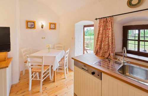 As the site is right by the edge of the forest, you can benefit from an extensive view over green meadows into the Waldviertel. The outdoor area is ideal for a romantic dinner on the sunny terrace in the private garden. There is a Weber bell grill. The terrace is furnished with a table and two benches. You can use two car parking spaces on site.