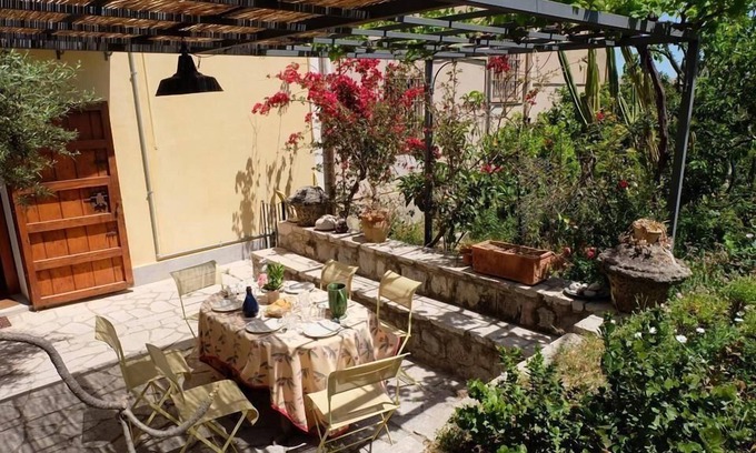 Particularly charming is the inner courtyard of the house with its stone paving and fountain, where you can enjoy the fresh air even in the middle of summer. You can also sit comfortably on the private terrace furnished with garden furniture. The house is surrounded by a shared garden with olive trees. Parking is available for you.