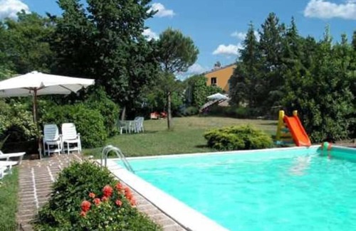 Medieval village, where once lived 4 peasant families, Cà Piero is on top of a hill (520 m m A.M.S.L.), which dominate the mountains, hills and sea Marches: the view is really fantastic, at 360 degrees! The most ancient structure dates back to 1422, and in the middle of this century there seems to have resided a long time the famous painter Piero della Francesca. Hence the name of the village. The most close location with schools, shops etc.. is Peglio, 6 km, the next is Sassocorvaro, distance 8 km, and by 9 km there are Urbania and Mercatale Lunano. The center of Urbino (the city in which Cà Piero is part), is located at 24 km. The Adriatic coast is at 40 km distance , and within 45 minutes you can easily reach Fano and Pesaro. Tuscany is only at 15 km (province of Arezzo.) Ca'Piero offers an over 600 m 2 wide area and a wonderful land (garden): • 6 bedrooms and 6 bathrooms • 1 living room (60 m 2 ) - TV, stereo e library, stove • 2 kitchens • 2 washing machines • 1 dining room (Table 18 seats, fireplace) • outdoor area for outdoor dining • Pizza oven • Pool • Wireless system for Internet connection • and much more The property is almost 3 hectare (27,600 square meter) including the level garden 4.000 m 2 around the house, where we find a beautiful swimming pool (7x10), solarium, children's playground, barbecue and a beautiful and functional, wood-burning oven . The remaining land is divided into a hillside of pine trees (adjacent to the pool), and several plots of land planted with fruit trees and alfalfa. NEW since 2016: The game room with billiards and table footballShort descriptionOther : Non-smoking houseShort description 1Number of kitchens : 1Other rooms : Dining room with an open fireplace and a game room with billiard and table footballLiving room 1Other living room features : • library • Flat screen TV • CD Player • DVD player • Children's play area • Games • DVD movies and games • and much moreBedroom 1Other bedroom furniture : Bedroom PESAROown toilet / doucheBedroom 2Other bedroom furniture : bedroom URBINO eingenes Toilet and Shower with double and single bedBedroom 3Other bedroom furniture : bedroom PEGLIO shared shower / WC with double and single bedKitchen 1Other kitchen equipment : This kitchen is part of the large dining room with fireplace Furthermore, there is an eat-in kitchen (see kitchen 2) availableSurroundingNearby sports facilities : Bike tours, Fishing, Mountainbiking, Riding possibilities, Skiing (alpin)Rental Facilities : Bicycle rental service, car rentalSurrounding 1Excursion possibilities : Urbania, Urbino, San Marino, San Leo, Gradara, Pesaro, Fano, Toscana-Arezzo e-Umbria Gubbio e Perugia, Riviera Adriatica: Riccione, Cattolica, Gabicce e Rimini.URBANIA, the ancient Casteldurante of roman age, birthplace of the painter Donato Bramante, there are numerous attractions of the city: the pottery, the Ducal Palace, the beautiful Barco, countless churches, the unique Museum of the Mummies, the Diocesan Museum with collection of ceramics, some beautiful views of Old Town and the picturesque Ponte dei Cocci. In a quarter of an hour you can reach: In 40 minutes you can reach:URBINO, a beautiful Renaissance city, with its Ducal Palace, which is undoubtedly good art-historical most important of this picturesque town, with its National Gallery of the Marche, remarkable is the Cathedral (Duomo), rebuilt many times until it reached the nowadays neoclassical appearance, and the adjoining Cathedral Museum. (photo: Urbino at night).At a distance of only 12 km from Cà Piero are the Metauro River and the Falls of St. Angelo.Within half an hour, you reach the regional park of the Gole del Furlo.In one hour you can reach:• The Natural Park of Forest of Tecchie located in the district of Serre di Monte Buranosul Catria and Monte Nero.Il Parco Naturale del situato nel comprensorio delle Serre di Buranosul Monte Catria e sul Monte Nerone.• Fano, a beautiful seaside town with its magnificent beaches. (Photo: the Lido di Fano). • PESARO, another unmissable seaside town to visit, with its famous historical center, the Piazza del Popolo and the Teatro Rossini. (In the picture, the overview of San Bartolo di Pesaro).• SAN MARINO, the beautiful Republic of San Marino, with its castles and unparalleled views of the Marche and Romagna. (Pictures San Marino). • The Park of Sasso Simone and Simoncello, not far from Ca’ Piero. In less than two hours you can reach:• The natural park of Monte Conero, (550 ms.m.) south of Ancona, from which you can enjoy a magnificent view of the Adriatic sea.• The Regional Park of Gola della Rossa - Frasassi, with its steep limestone cliffs, where are the Caves of Frasassi. This well-known underground complex belongs to the biggest and most beautiful cave systems in the world. In the main cavity, 240 m high, the Dome of Cologne would have place!Large areas of the Marches, with their particular content geological, botanical and wildlife have become Natural Reservates.Location description : Ca' Piero, an ancient medieval hamlet of 1400, restored in 2010 as a single large country house, maintains the typical characteristics of the terracotta floors, ceilings with exposed oak beams, and old original fireplaces.Other leisure facilities : Garden and outdoorGarden facilities : Garden furniture provided, Grill, Playground equipment, SandboxOn-site leisure facilities : Playground, Solarium, Swimming poolService benefitsService facilities (may incur additional costs) : Cleaning service during your stay, Cook, Drinks service, Shopping service before arrival, Transfer service (airport etc)Service benefits 1Other : On request we can offer you the following offers:• Rental of a bouncy castle for children• Moutain bike tours• Trekking tours• Cleaning service• Cooking service• etc.