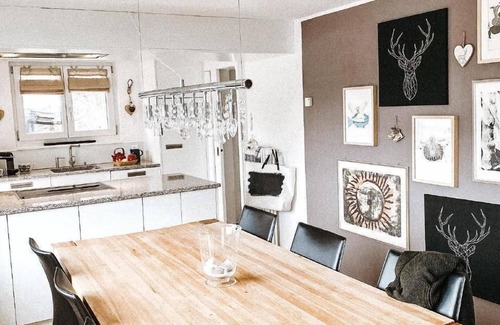 The house has 4 bedrooms, 1 bathroom with shower/WC and 1 guest WC, TV, a fully equipped kitchen with dishwasher, a dining area, a balcony and a garden with a fireplace. Two free parking spaces are available at the house. Public transport, grocery shop, restaurants, ski lifts, cross-country ski trail, children's playgrounds and the lake are 200-500 metres away and within easy walking distance.