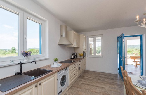 The newly built house (2018) has all the modern equipment that you need for a comfortable holiday. It can accommodate up to five persons. The two bedrooms are furnished with a double bed each. There is a sofa bed in the living area. The top modern kitchen is fully equipped. The bathroom offers a shower, wash basin and toilet.