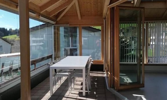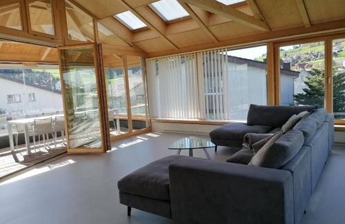 The holiday home is located in Waldstatt near St. Gallen. The train station, the heated swimming pool, restaurants and all shops such as bakery (gluten-free), drugstore, Coop, butcher's shop are a 5-minute walk away.