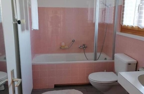 Living in a lovingly furnished house, Upper floor with saloon with TV (Swisscom TV); spacious dining room with 10 seats, kitchen-diner with comfortable seating area, dishwasher, oven, bedroom with double bed, bedroom for a child, fully equipped bathroom, toilet.