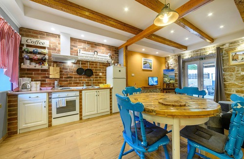House can accommodate 4 guests. Beds are situated in 1 sleeping rooms, but also in the living room, within 50m2. Guests can use a private terrace to enjoy the warm summer evenings. For full enjoyment and relaxation there is a private barbecue for this accommodation guests only. During stay, there is a private pool for relaxation and pleasure. This accommodation unit welcomes pets at no additional costs.