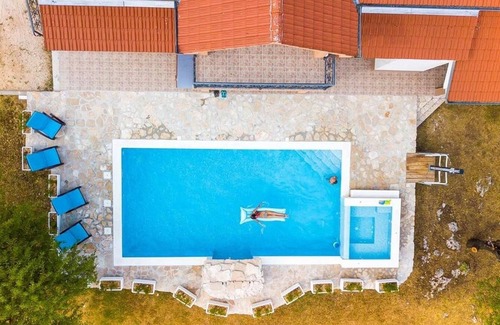 House can accommodate 7 guests. Beds are situated in 3 sleeping rooms, but also in the living room, within 120m2. Guests can use a private terrace to enjoy the warm summer evenings. For full enjoyment and relaxation there is a private barbecue for this accommodation guests only. During stay, there is a private pool for relaxation and pleasure.