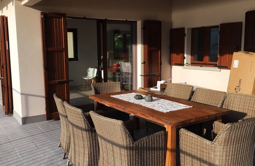 Casa Nuova is the younger but bigger sister of Villa Verdi, which opened in 2018. It is a brand new holiday home - also near the small, typical Italian village of Brezzo di Bedero on the east coast of LAGO MAGGIORE (Provincia Varese). At the end of a cul-de-sac without any through traffic, the property is also a small oasis of calm that invites you to relax: