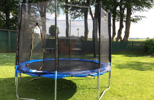 In the basement there is plus another separate shower, toilet, sink, and a very large garage, where there is a ping pong table, a foosball table and a weight bench, and there the kids find enough space to play. Outside, the large garden next to the trampoline a lot of space for ball games. Of course, belonging to the house parking lots are free of charge.