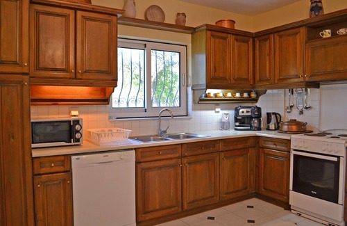 The elegant villa was built in accordance to the typical Zakynthian architecture and has only recently been fully and stylishly. It consists of three levels: ground floor, loft, and lower ground floor. The villa features four bedrooms and three bathrooms and can accommodate up to ten persons. All rooms are equipped with either air-conditioning or ceiling-fans. The ground floor has a spacious and comfortable open plan living-room / dining-room area with a fully equipped kitchen, a master bedroom with a king size bed (160 x 200 cm), a second bedroom with two single size beds (90 x 200 cm), and a bathroom with a bathtub, wash basin and toilet. The open fireplace provides a romantic ambience in the living area where you will also find a large flatscreen TV. The kitchen is complete with dishwasher, electric stove, oven, microwave, fridge with freezer compartment, kettle, toaster and coffee machine. The impressive interior staircase on the ground floor leads upstairs to the must-see, cozy loft. This open space has been converted to comfortably accommodate four persons - it is practically a separate apartment. Traditionally decorated, the loft is comprised of a double bed (160 x 200 cm), two single size beds (90 x 200 cm), a child's crib and a private bathroom with a shower, wash basin and toilet. The lower ground floor features a romantic bedroom with a vintage double bed (140 x 200 cm), a private bathroom with a shower, wash basin and toilet and a laundry area. This level may be accessed from the interior staircase on the ground floor and via its own private entrance from the yard. The villa has a washing machine, bed linen and towels are provided and WiFi is also available free of charge.