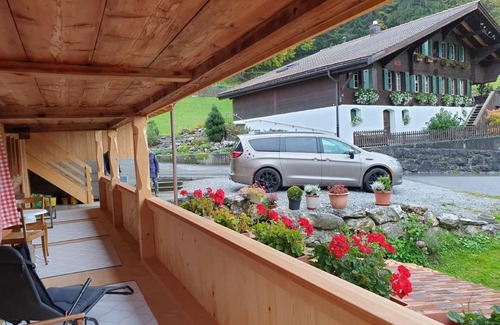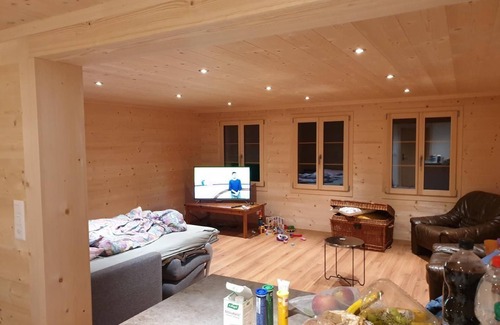 Newly renovated holiday flat approx. 60 m2 (semi-detached house), max. 3-4 persons, sunny, quiet location in Grubenwald 3.3 km outside Zweisimmen. Large living room with sofa bed (140x200) for 1 - 2 persons, TV, sofa armchairs. Large bedroom with double bed (160x200) with large wardrobe. Kitchen (simply furnished) with dining table, fridge with freezer compartment, oven, 4 hotplates, capsule coffee machine. Sep. bath/shower/WC. Shared use of washing machine possible on request. Veranda with marvellous view of Rinderberg and Zweisimmen. Large storeroom with access to the meadow with seating area. Car park available. Distance to the next skiing area Zweisimmen - Rinderberg approx. 3.3 km. Distance to the next shopping facilities 3 km. Ideal starting point for hikes or skiing holidays as the flat is centrally located between Rinderberg, Saanenmöser, Saanen, Gstaad, Lenk etc.
