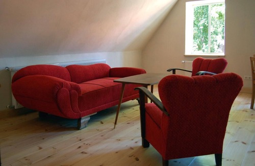 The accommodation is in a village with preserved old structures (church, manor house etc.), away from mass tourism by the Baltic Sea, where you can find peace and quiet but still get to the town and the beach within half an hour.