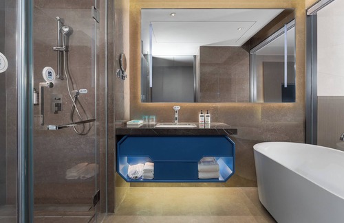 Holiday Inn Express Lanzhou Downtown by IHG offers 188 accommodations with complimentary bottled water and slippers. Accommodations offer separate dining areas and include dining tables. Beds feature down comforters and premium bedding. A pillow menu is available. 55-inch flat-screen televisions come with cable channels. Bathrooms include showers with hydromassage showerheads, complimentary toiletries, hair dryers, and toothbrushes and toothpaste.