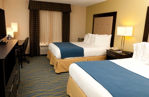 Holiday Inn Express & Suites Bloomington - Normal by IHG offers 86 accommodations with safes and complimentary newspapers. Accommodations offer separate dining areas. Beds feature premium bedding. Flat-screen televisions come with premium cable channels and pay movies. Refrigerators, microwaves, and coffee/tea makers are provided. Bathrooms include bathtubs or showers, complimentary toiletries, and hair dryers.