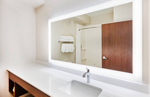 Holiday Inn Express & Suites Lenexa - Overland Park Area by IHG offers 96 air-conditioned accommodations with laptop-compatible safes and coffee/tea makers. Beds feature premium bedding. A pillow menu is available. 42-inch flat-screen televisions come with premium satellite channels. Refrigerators and microwaves are provided. Bathrooms include bathtubs or showers with deep soaking bathtubs, complimentary toiletries, and hair dryers.