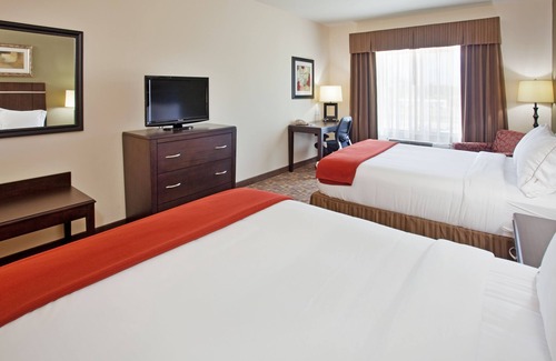 Holiday Inn Express & Suites Topeka North by IHG offers 81 accommodations with safes and complimentary newspapers. Flat-screen televisions come with premium cable channels. Refrigerators, microwaves, and coffee/tea makers are provided. Bathrooms include shower/tub combinations, complimentary toiletries, and hair dryers.