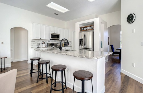 Bring the whole family to this great place with lots of room for fun or to do remote work on the screened patio. This 3-bedroom, 2-bath vacation rental home in Deltona has a fully equipped kitchen, a private heater salt water pool, and is close to major highways leading to many world class tourist attractions. Deltona is the central area - only 30 minutes to Daytona Beach - the world’s most famous beach & 45-60 minutes to Disney & Universal.