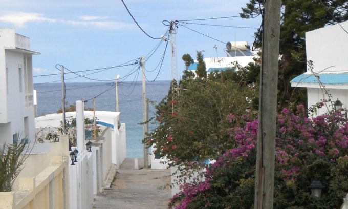 Charming house between sea and mountain, Style Arabo Moorish inspiration Sidi-Bou-Said, direct on the beach, Enchanting view of the Mediterranean,