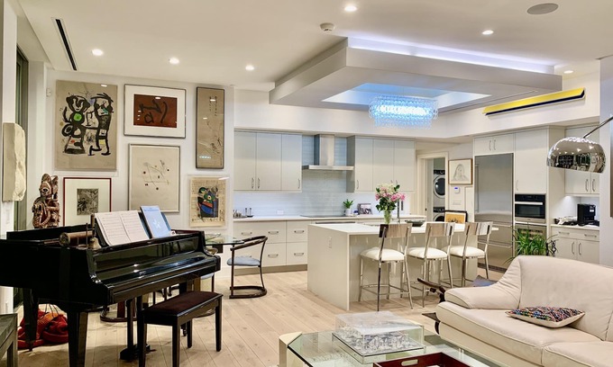 The master bedroom has motorized curtains, and 2 walls of glass. Both bedrooms are ensuite, and have balconies.