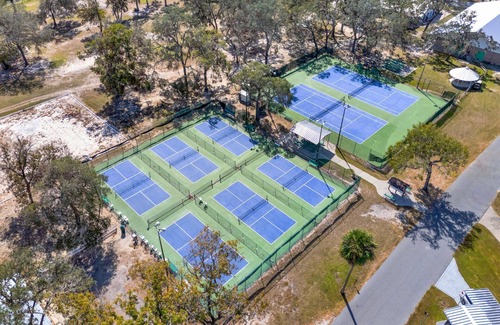 Fully-furnished vacation rental, PLUS OPTIONAL SUITE AVAILABLE - CALL RESORT - (352) 787-5151. The main home sleeps 6 comfortably with 3 spacious bedrooms and 3 bathrooms. Outdoor entertaining space includes large gathering area, private pool and spa. This vacation home and suite are tucked back in a serene section of the resort. Guests have access to on-site resort amenities and activities. Holiday RV Village offers a number of amenities including bocce, marina, fitness center, sports field, tennis and volleyball. This is a 55+ RV Resort, however, families and guests under age 55 are allowed to book stays for two weeks or less.
