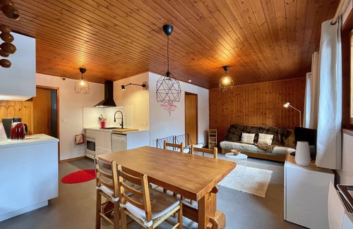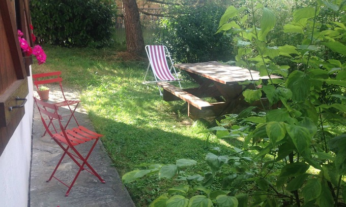The 2 spacious rooms is ideally placed, with its green space, the ground floor of a chalet.