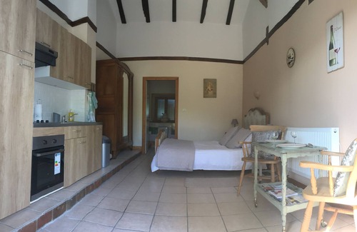 Gite le Vigneron is a studio apartment with accommodations a kingsize bed suitable for 2 people and its own private and spacious shower room with toilet.