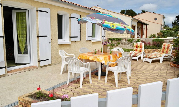 Near city center of Brem-sur-Mer and not far the one of Brétignolles-sur-Mer, this hoomy house welcomes you warmly. Its fenced site and its large garden are ideal to let your children play outside. For you, parents, the deckchairs awaits you. The patio allows to serenely take advantage of your family holidays : breakfast at the sunrise, lunch on the patio, snack before returning to the beach and evening games on hot summer evenings. With its two bedrooms and four bedding, this house is ideal for four people. The kitchen, fully equipped is ready for you to prepare your dishes.