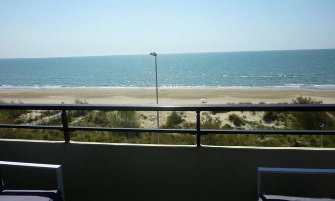On the 4th, and last floor (no elevator), you can enjoy two terraces facing the beach of Grand Travers, cleaned and monitored daily, in a quiet area (street privatized by terminals) with private parking, bike and pedestrian at the bottom of the building (renovated this winter), 200 meters from private beaches and less than 2km from the bustling center of La Grande-Motte.