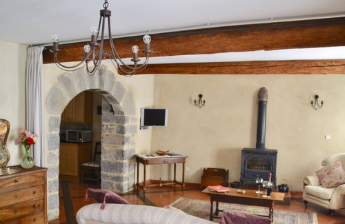 The Garden Studio, so called for its access straight into the garden with its own private area directly outside the kitchen double doors, offers the perfect chance to enjoy easy yet comfortable French living. With a log burner for cooler months and huge glass patio doors, this is a wonderful retreat throughout the year. The Garden Studio, entered through the glass patio doors from the garden, has a fully equipped fitted kitchen, and a dining area with delightful views back into the garden. An imposing archway leads into the lounge with its comfortable furniture a log burner and a front door for easy access to the village.
