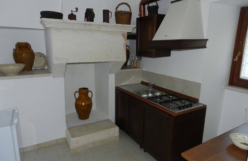 Outside are preserved living spaces typical bordered by stone walls dry period with the typical plants (arbutus, loquat). Is still practiced the culture of secular olive trees of the land attributable to traditional methods. Among the ancient olive trees there are some fruit trees such as figs, cherries, almonds, walnuts, apricots, figs India as per tradition for family needs.