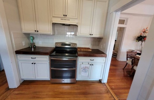 The first floor is available to guests and features two bedrooms, one with a king bed, and the other a queen. The kitchen is large enough to cook and move around while the formal dining room will give guests room to gather for a meal or work on their laptops.