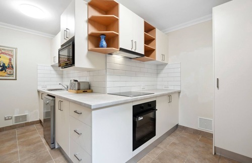 Get a peaceful night’s sleep in our two bedrooms, each boasting reverse cycle air conditioning, high-quality linen and towels. Extra pillows, blankets and hangers are also provided for your convenience. The bathroom is fitted with a soothing bath tub with spa jets where you can indulge in a relaxing soak after a long day of exploration.