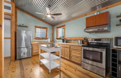 The house sits on a beautiful 3 acres just outside city limits, giving you a peaceful and private area to enjoy your visit. While also just 3 miles from Main Street!