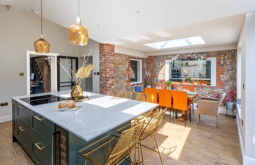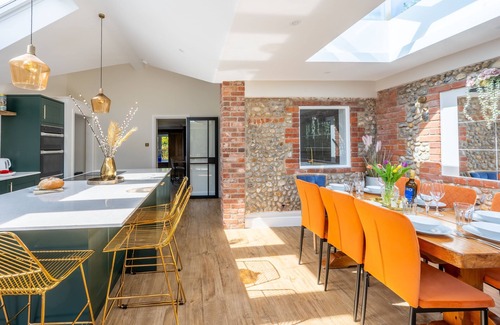 A super-stylish detached brick and flint property, Holly Cottage is fashionably modern and has oodles of space. Inside and out, it won't disappoint. The hub of the house is its spacious light and airy kitchen / diner which spills on to the rear enclosed garden, via french doors, on to the outdoor relaxing and eating area - it's secure for children and the dogs to play safely while you cook up a storm in the well-equipped kitchen. The sitting room oozes comfortable charm, with its cosy wood burning stove, ample seating and Smart television, plus there's another seating area around an ornamental fire in the entrance hall with a working from home desk, as well as a wee snug just off the sitting room, with a sofa for complete peace and quiet. The ground floor also has a double bedroom - ideal for older guests or those with limited mobility - and a shower room next door. On the first floor are three lovely bedrooms; the Master has a king-size bed and en-suite with a bath and separate shower, one room is a double and the other is a bunk room and these two share the family shower room. With plenty of parking for four cars in the driveway, a one minute walk to the local pub from the left of the front door and the village green and pond to the right, this bolthole couldn't be a more perfect Norfolk hideaway!