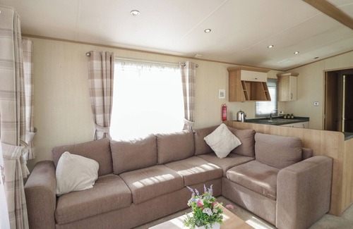 Holly, a single-storey lodge, consists of an open-plan living space including a kitchen with electric oven, gas hob, microwave, and fridge/freezer, a dining area with seating for four, and a sitting area with Smart TV and sofa bed. The bedrooms consist of a double with en-suite basin and WC, and a twin, along with a shower room. WiFi, fuel, power, bed linen, and towels are included in the rent. Outside, there is a non-enclosed front decking with furniture and off-road parking for one car. One well-behaved dog is welcome. Sorry, no smoking. Shop 1.2 miles, pub 1.1 miles. Make special memories with your loved ones at Caravan 4. Note: Although this is a single-storey property, there are steps up to entrance, please take care. Note: The sofa bed is for flexible sleeping arrangements and not for an extra two guests.