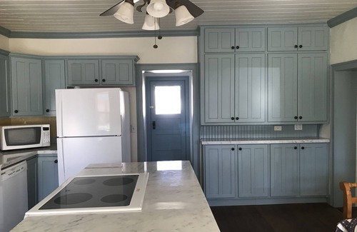 Our home has 3 cosy bedrooms. The first bedroom is located on the main floor with a double bed. The second bedroom is just up the stairs in an open loft area with two queen beds and the third bedroom is also upstairs with one queen bed and a twin bed. Enjoy our beautifully renovated spacious kitchen, which is fully equipped for cooking delicious meals for friends and family. There is also a classic dining room and living room on the main floor as well as a small laundry room and full bathroom. Enjoy our small patio just outside the kitchen with gardens as well as the large lawn for games, family time or outdoor eating. Or just curl up with a good book on the front or side porch.