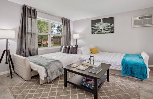 Beautifully decorated, Hollywood-style accents, very close to Aurora Il heart. Featuring 2 spacious bedrooms with queen-size memory foam mattresses. 1 Full bathroom. Living room with 2 queen-size sofa beds with 75" Smart TV, Fully equipped kitchen.
