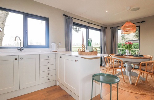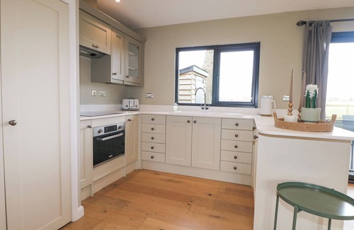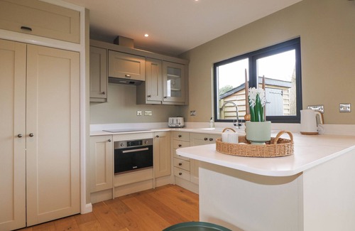 Holm Oaks Cottage, a single-storey annex, consists of an open-plan kitchen/living/dining room with oven, hob, microwave, fridge/freezer, coffee maker, toaster, washing machine, breakfast bar for three people, dining seating for six people, and sitting area with woodburning stove. The bedrooms consist of two doubles, serviced by a shower room. Outside, there is an enclosed rear garden with decking and lawn space and off-road parking for three cars. One well-behaved dog welcome. Sorry, no smoking. You'll find a shop in 1.5 miles, pub in 1.3 miles, and lake in 0.9 miles. WiFi, fuel, power, starter pack for woodburning stove, bed linen, and towels are included in the rent. Your stay at Holm Oaks Cottage is sure to be a memorable one. Note: Good housekeeping bond of 250 GBP.
