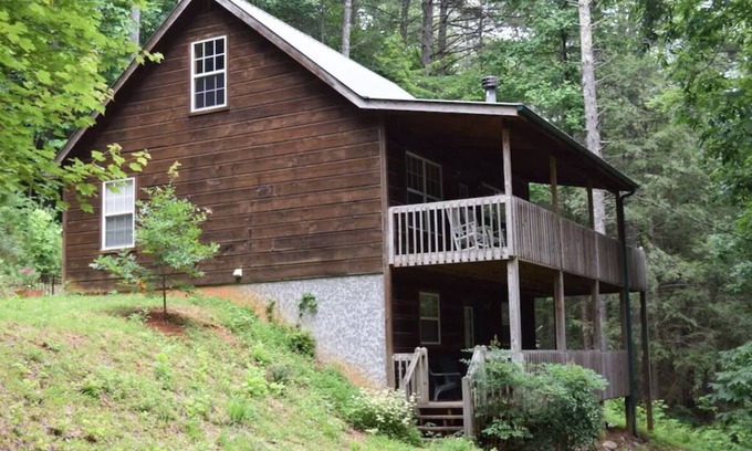 Secluded cabin in the woods located approximately 1 mile from Helton Creek Falls with two bedrooms, a sleeping loft that is great for older kids, and one bath.