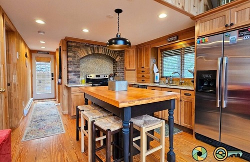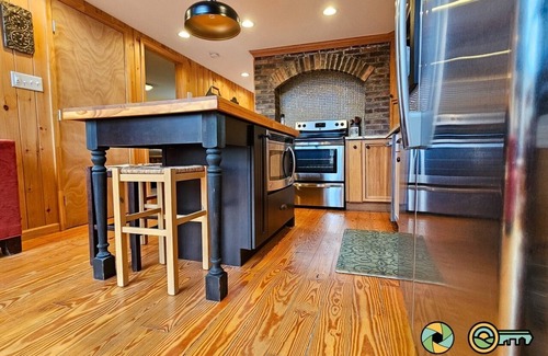 Welcome to Holocene Chalet - treetop mountain views!, an idyllic venue for your unforgettable wedding celebration. This updated vintage ski chalet in Mount Jackson, Virginia, provides a breathtaking backdrop with stunning vistas of Great North Mountain and Wolf Gap. Nestled among the trees, this property seamlessly blends rustic charm with modern amenities, making it an enchanting setting for intimate gatherings or larger celebrations alike.