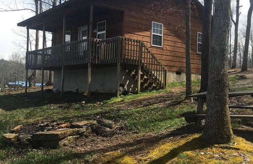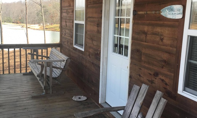Small Cabin setting aside a 185 acre private lake. The Cabin is sitting only a few yards from the waters edge, where you can enjoy a day fishing or swimming in the lake. There is a fire pit and charcoal grill in the yard for those cools nights, a swing/glider on the porch to just sit and relax and enjoy the landscape. Cabin comes fully furnished with linens and cooking utensils. Pets are allowed with extra fee and limited to no more than 2.