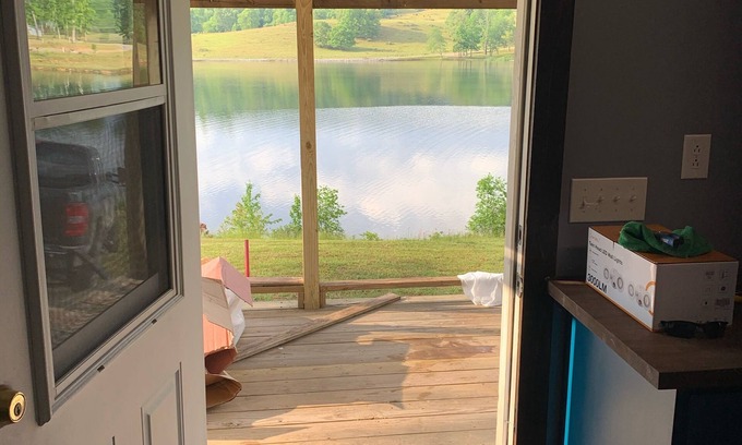 For rent is a lake front two bedroom tiny house. Cabin is two bedroom with queen size beds. Full kitchen with Keurig type coffee maker. Cabin is fully furnished with linens and cooking utensils. Living room has sectional couch with Roku TV. Outside there is a fire pit, picnic table and charcoal grill. Come enjoy the views and relaxing lake environment.