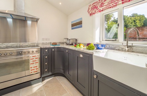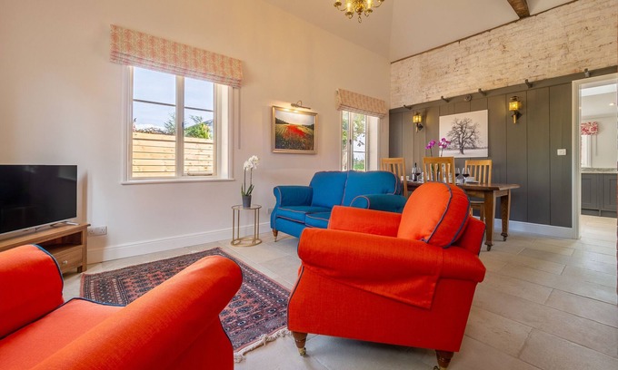 A new and luxurious conversion of an 19th Century coach house set within the grounds of a classic Victorian vicarage. Impressive attention to detail, highest quality modern conveniences and stylish interior design all come together to create an exceedingly comfortable and chic rural hideaway. Two large en-suite super king-sized bedrooms are perfectly in balance with a well-equipped substantial kitchen and light drenched vaulted dining room and living space. Exposed brick work, premium wallpaper, new and old solid oak, original stable fixtures, flag-stone flooring and vibrant upholstery sympathetically blend crisp newness with timeless tradition.